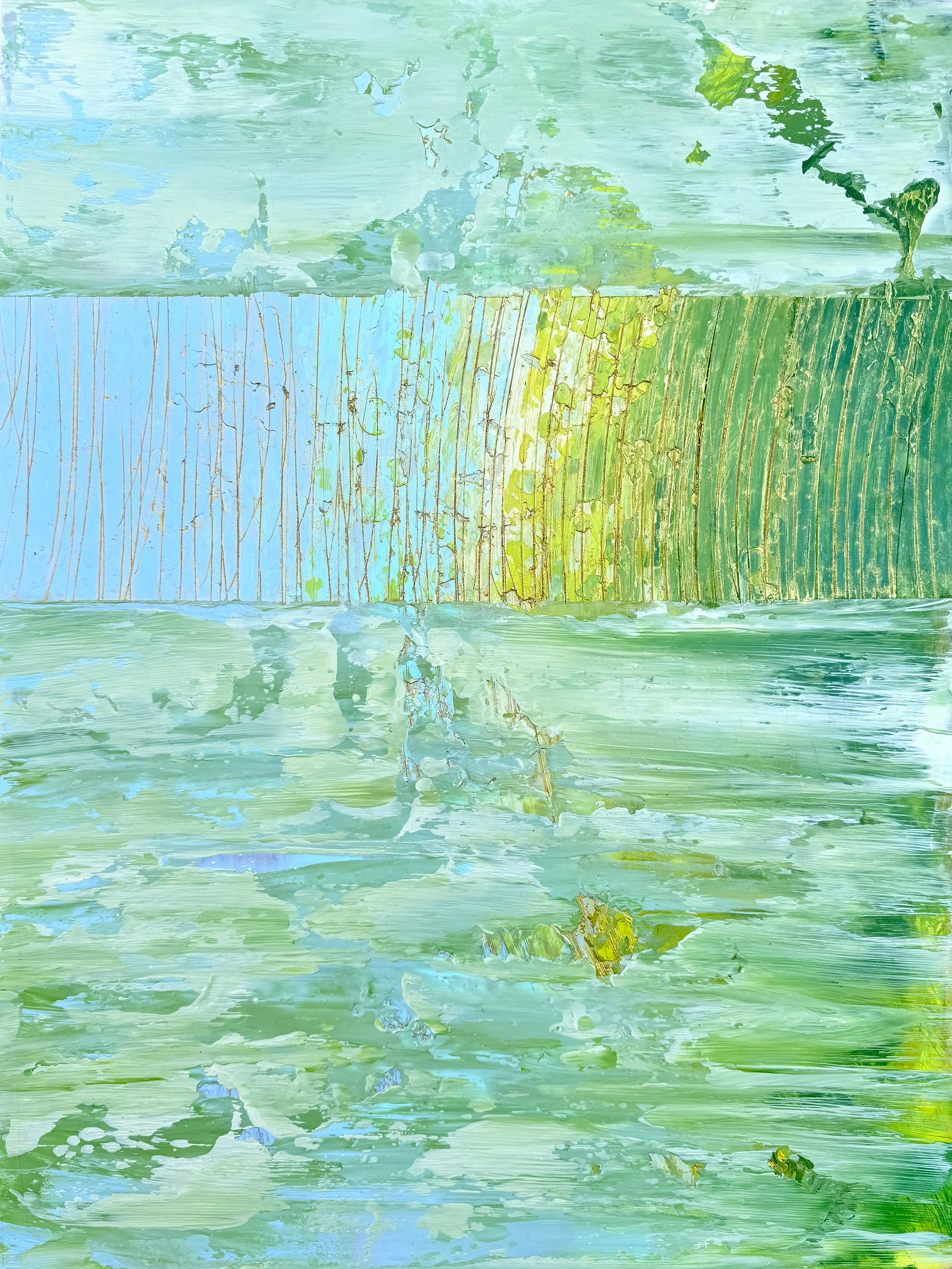 In The River | Encaustic and oil pigments. 24 x 30 inches.